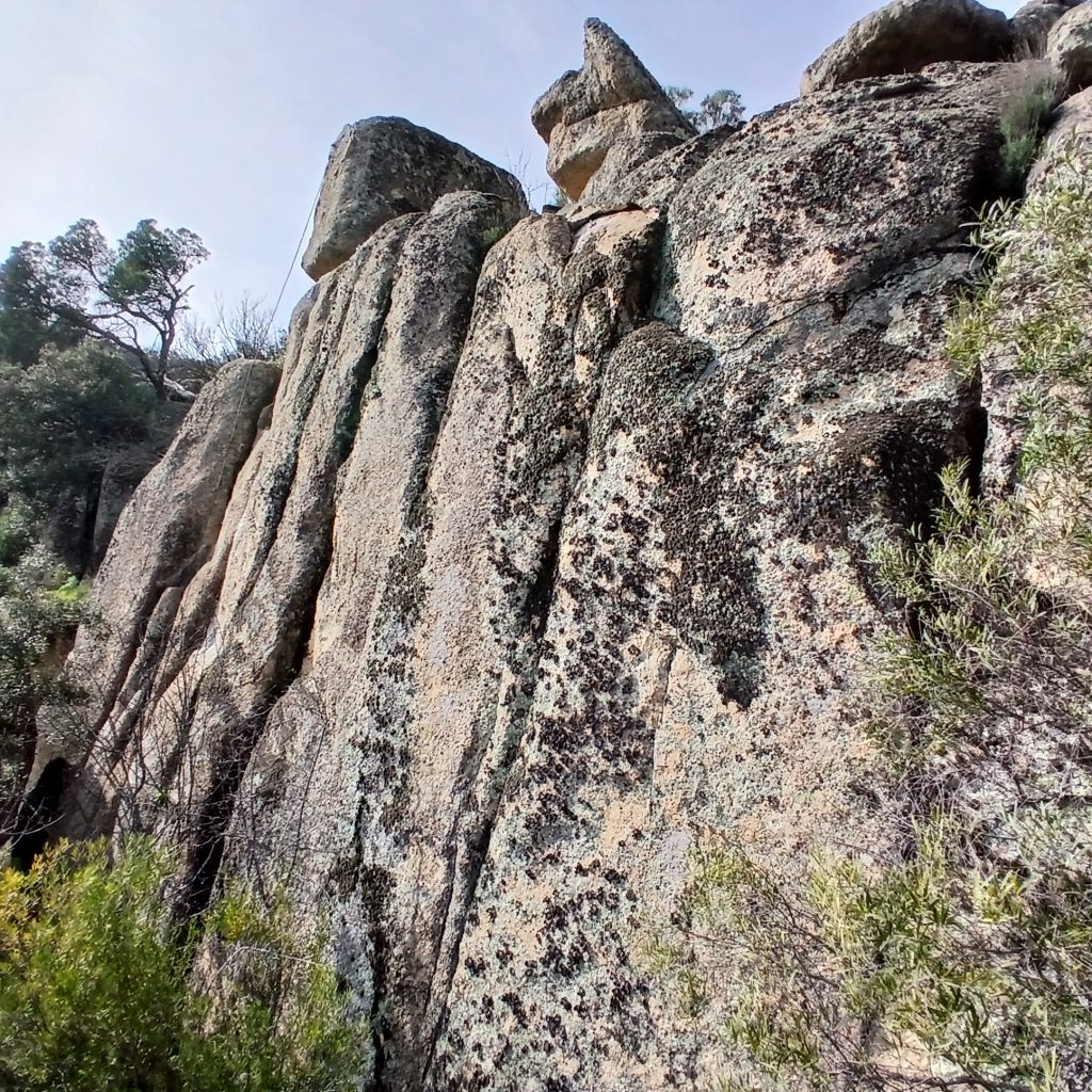 El sector FISURAS, está compuesto sobre de todo de fisuras de autoprotección. Es una pena que la gente no venga con sus juegos de seguros flotantes para repetirlas, porque, aunque no muy largas, son bonitas. Recomendable traer un cepillo y un sacafisureros para realizar limpieza previa, ya que, a penas se repiten.